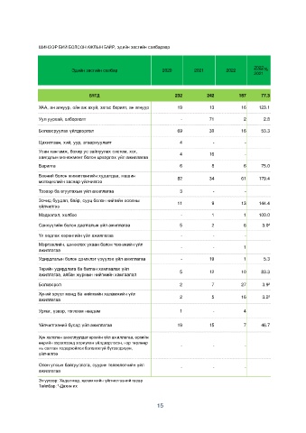 Үйлчилгээний бусад үйл ажиллагаа 19 15 7 46.7