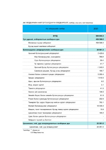 АЖ ҮЙЛДВЭРИЙН НИЙТ БҮТЭЭГДЭХҮҮН ҮЙЛДВЭРЛЭЛТ, салбар, оны үнэ, сая төгрөгөөр