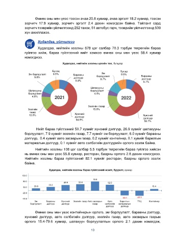 Нийт бараа гүйлгээний 50.7 хувийг хүнсний дэлгүүр, 26.9 хувийг шатахууны
