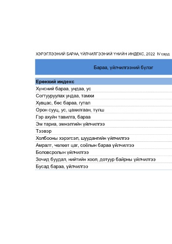 ХЭРЭГЛЭЭНИЙ БАРАА, ҮЙЛЧИЛГЭЭНИЙ ҮНИЙН ИНДЕКС, 2022 IV сард