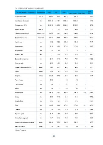 Гол нэр төрлийн бүтээгдэхүүн Хэмжих нэгж 2020 2021 2022 %