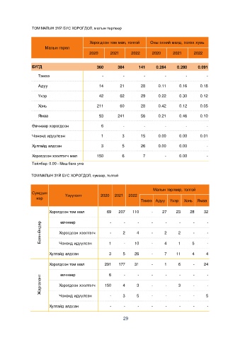 ТОМ МАЛЫН ЗҮЙ БУС ХОРОГДОЛ, малын төрлөөр