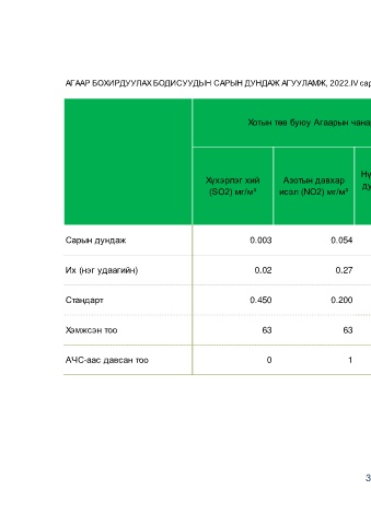 Хүхэрлэг хий Азотын давхар дутуу исэл (CO) Тоос pM2.5 мг/м3 Хүхэрлэг хий Азотын давхар