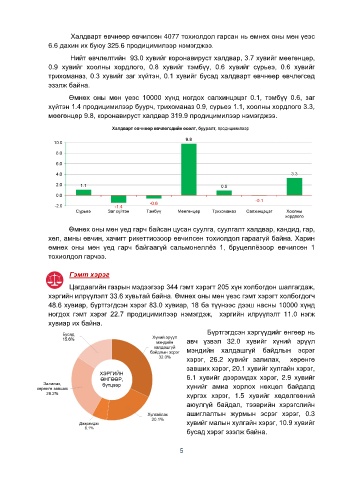 хүйтэн 1.4 продицимилээр буурч, трихоманаз 0.9, сүрьеэ 1.1, хоолны хордлого 3.3,